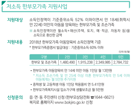 이외에도 아동 양육비 지원이라는것이 있는데요 중위소득 30%이하 한부모가 생계급여를 받고 있더라도 월 10만원의 아동양육비를 추가적으로 받을수 있습니다. 생계 급여를 받는 청소년 한부모의 경우에는 아동 1인당 25만원이 지원됩니다.