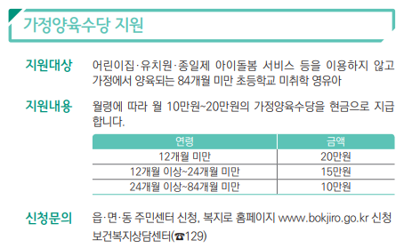 * 종일제 돌봄 : 만 3개월~36개월 이하 아동에게 이유식, 젖병소독, 기저귀 갈기, 목욕 등 영아돌봄과 관련된 활동 전반
